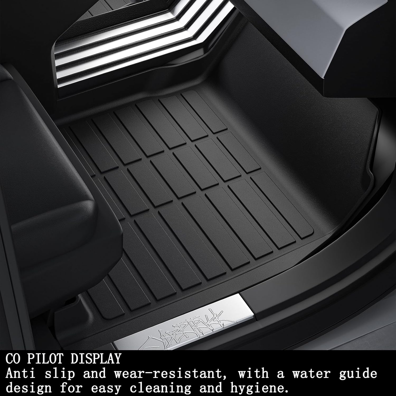 El diseño de pared alta con bordes elevados ayuda a contener barro, agua, nieve, arena y otros residuos, evitando que se filtren hacia la alfombra original del vehículo. Además, cuenta con ranuras y crestas profundas que facilitan el drenaje y mantienen la suciedad contenida.