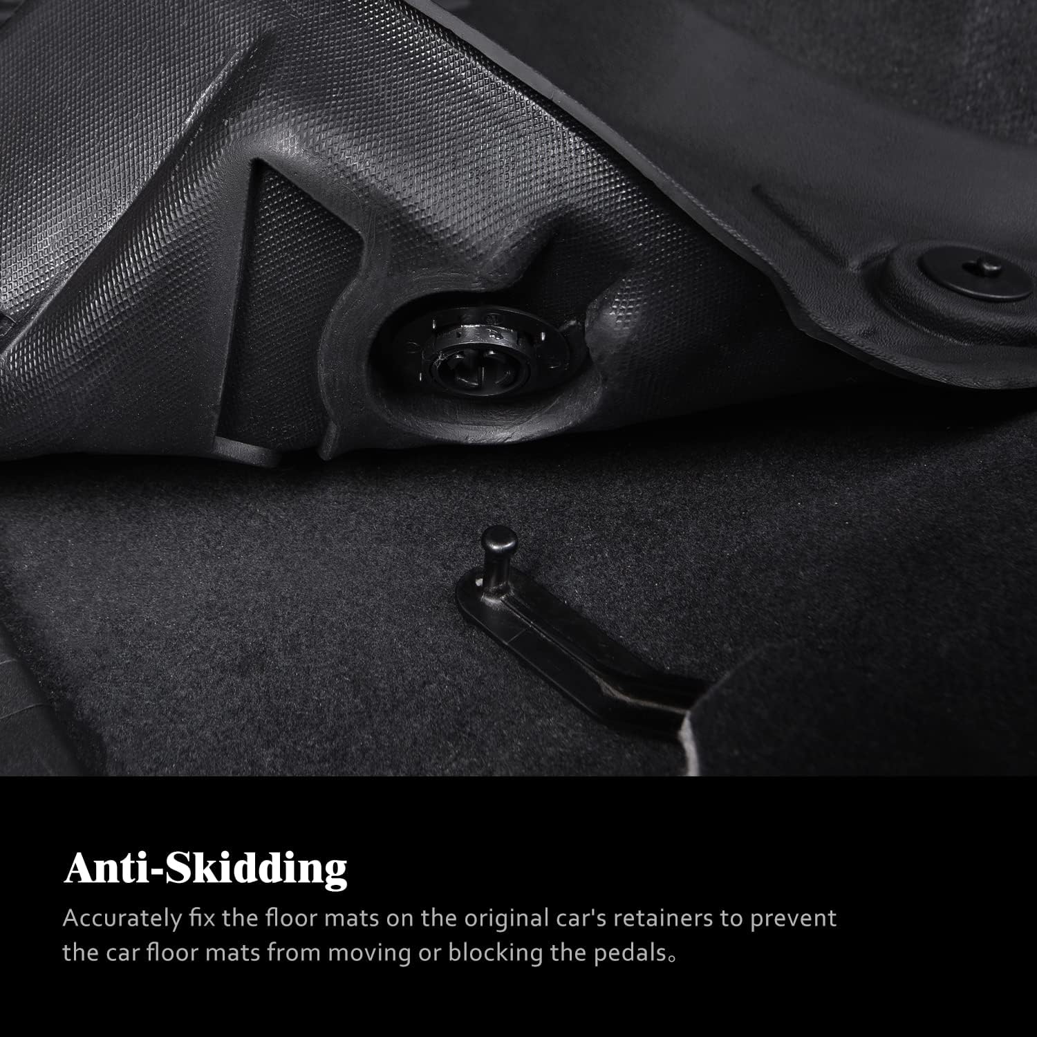 Gracias al sistema antideslizante compatible con los anclajes originales del vehículo, los tapetes permanecen firmemente en su lugar sin necesidad de accesorios adicionales. Esto asegura estabilidad, seguridad y un ajuste preciso tipo “guante”.