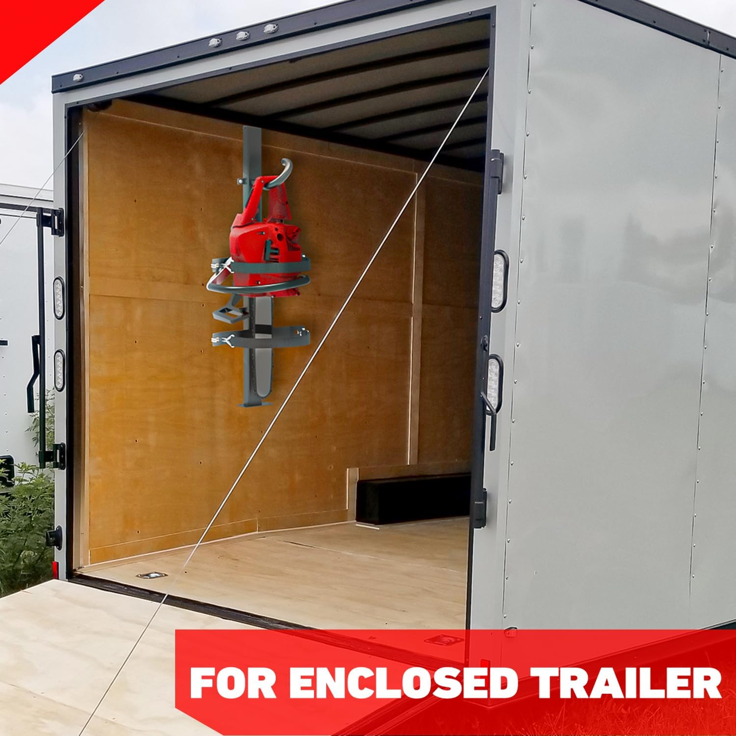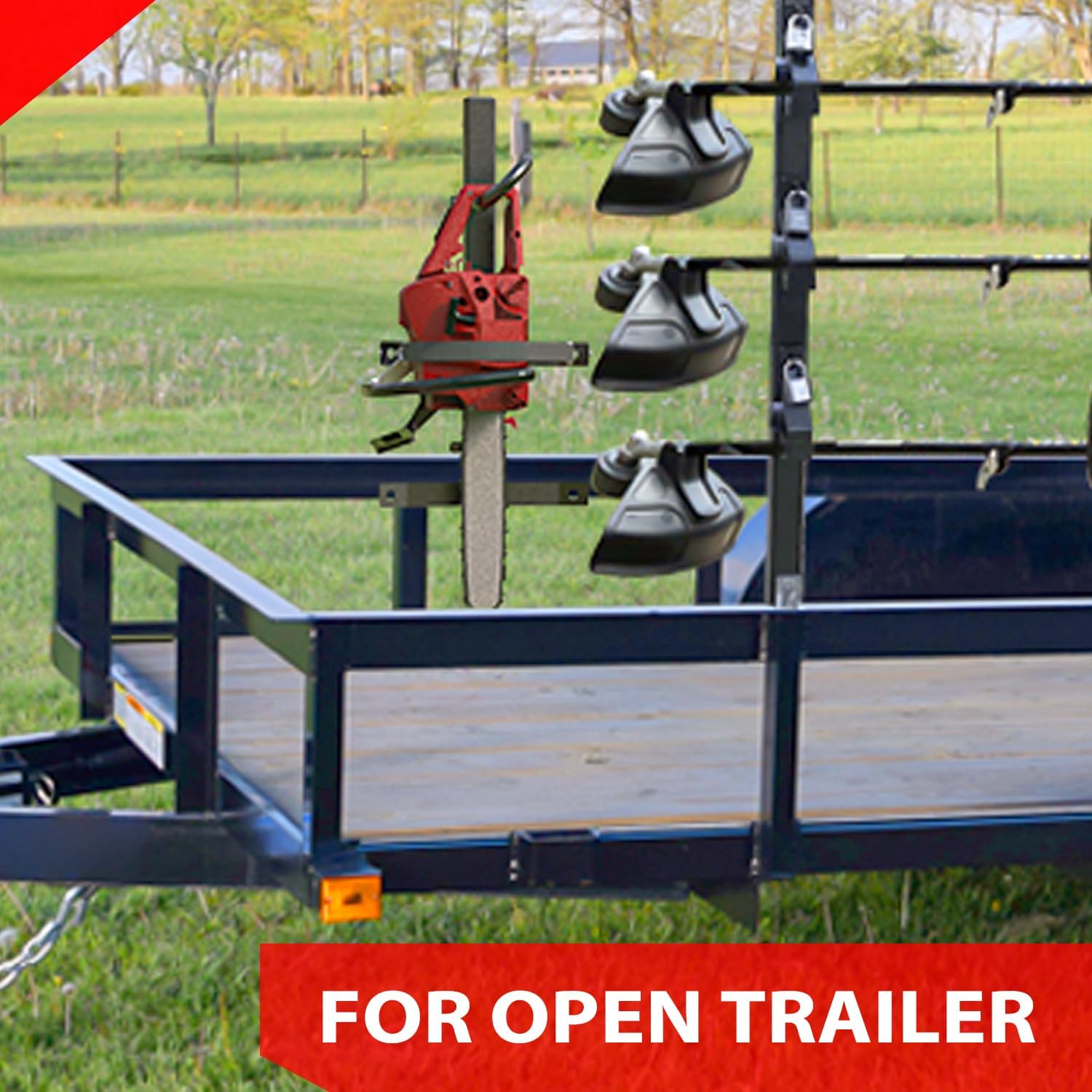 Transporte práctico y organizado: Este soporte facilita mover herramientas directamente en el remolque, sin ocupar espacio adicional en el vehículo. Mantiene el equipo accesible y ordenado, optimizando el flujo de trabajo.