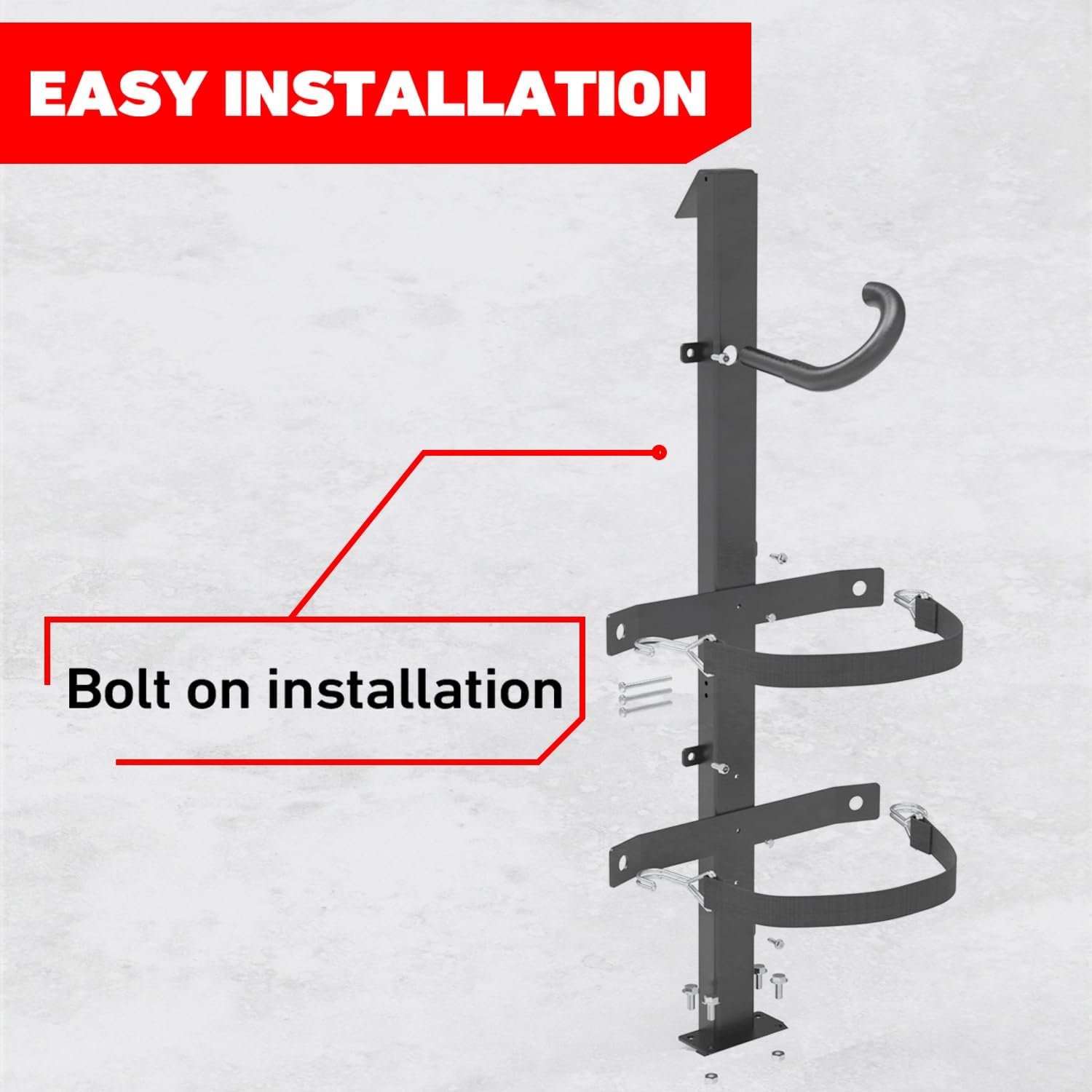 Instalación sencilla: Cuenta con sistema de instalación atornillada (bolt-on) e incluye todos los accesorios necesarios para un montaje rápido y seguro.