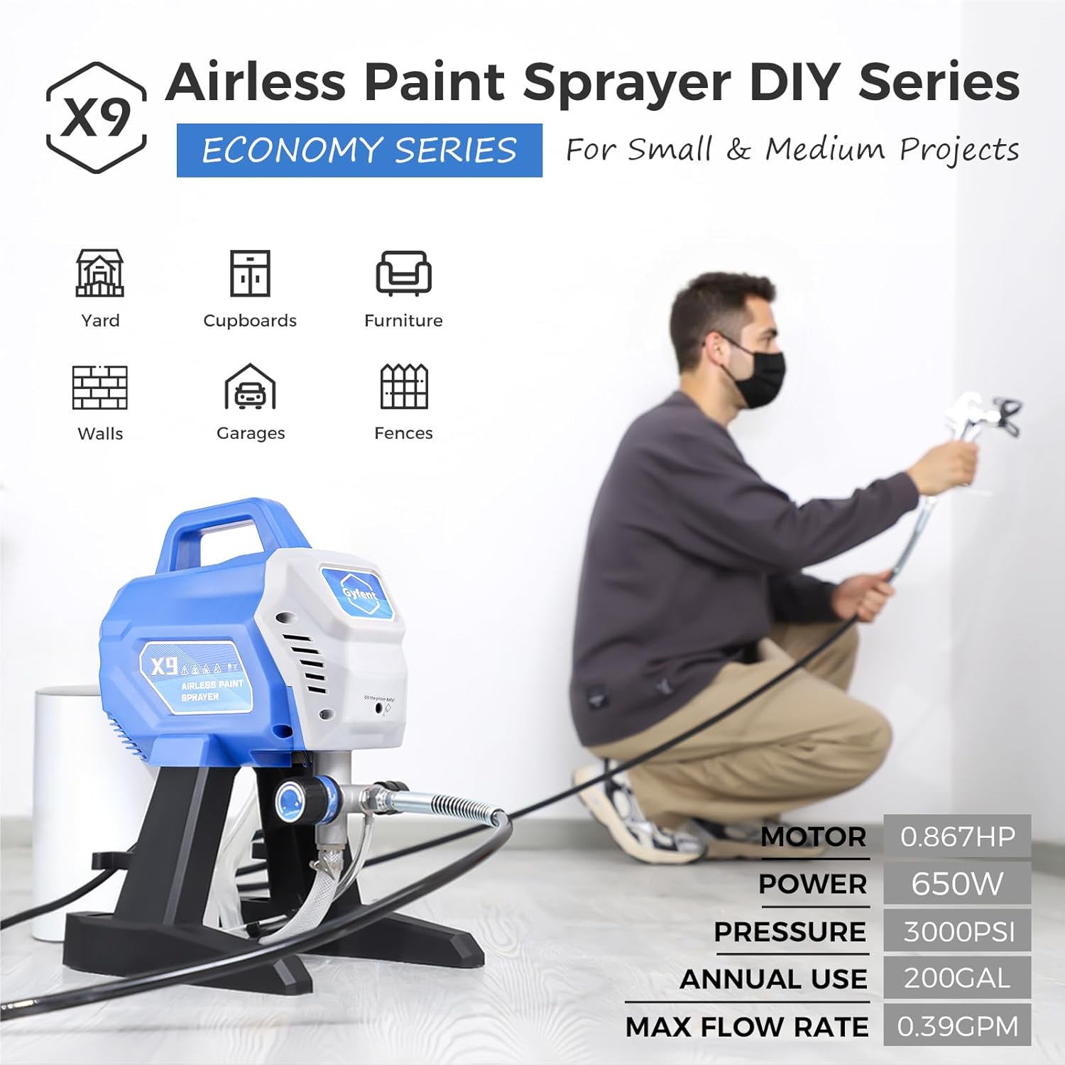 Gyfent X9 Pulverizador de Pintura Sin Aire 650W 3000 PSI con Presión Ajustable