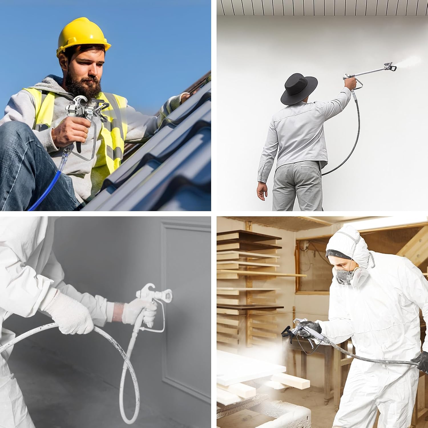 Equipado con un motor de 650W, alcanza una presión máxima de 3000 PSI y un caudal de 0.39 GPM, permitiendo ajustar presión y velocidad para adaptarse a distintos tipos de superficies y pinturas. Es compatible con pinturas a base de agua y aceite, lo que lo convierte en una herramienta versátil para interiores y exteriores.