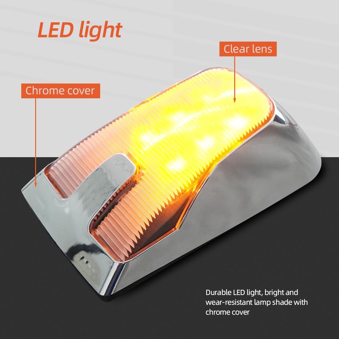 Las luces LED laterales ámbar FV para camiones Volvo VN, VNL y VNM 2004-2015 ofrecen reemplazo directo OEM, instalación plug-and-play y mayor visibilidad gracias a sus chips LED de alta intensidad. Su carcasa cromada con protección IP67 resiste agua y polvo, proporcionando durabilidad y un rendimiento confiable en carretera.