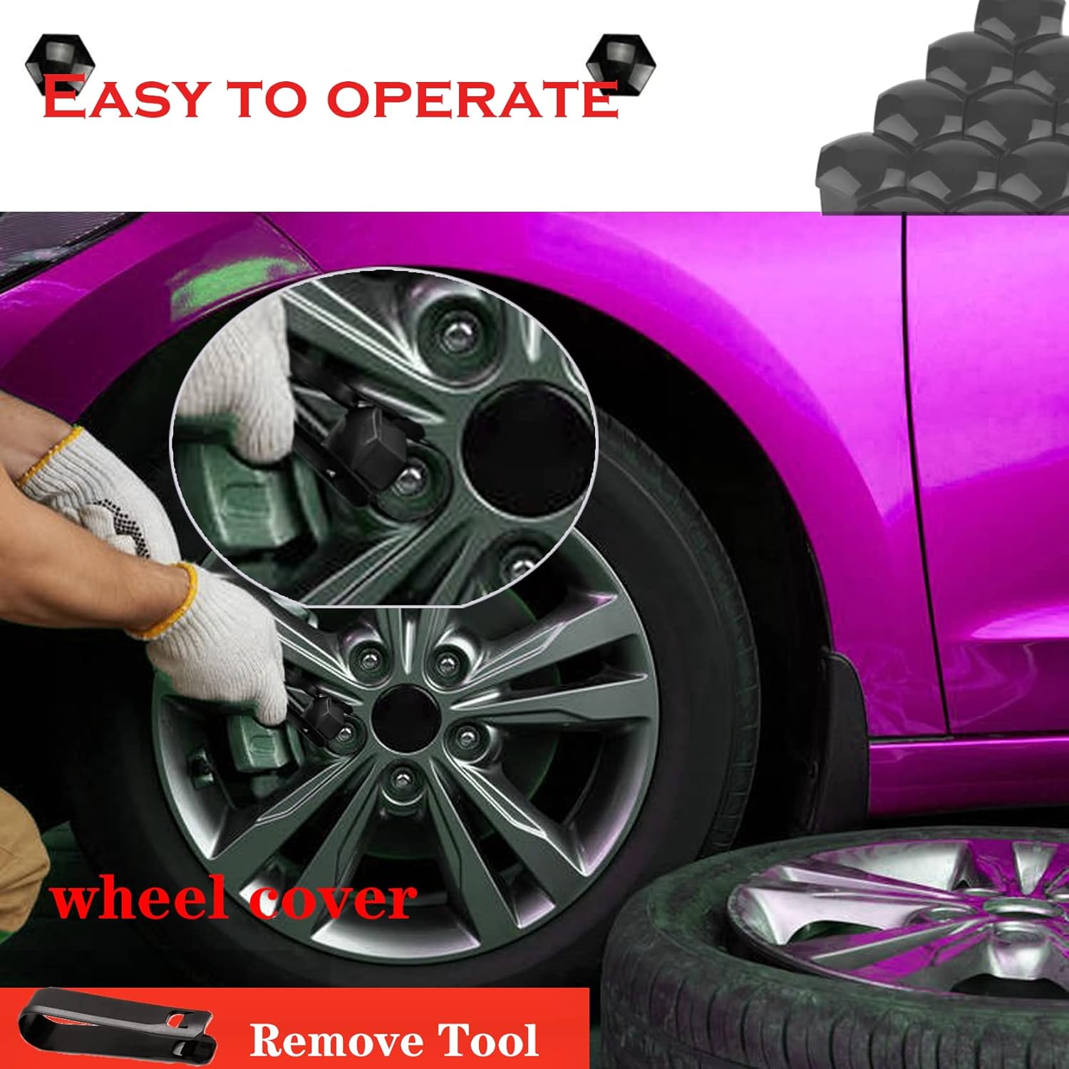 Contenido del paquete: 20 × Tapas para tuercas de llanta, 1 × Herramienta de extracción.